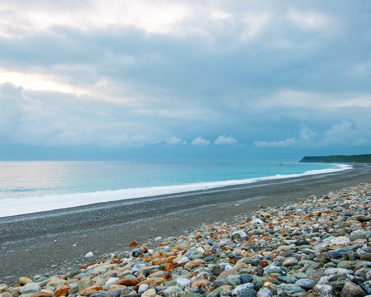 以圆石海滩与清澈海水闻名,是花莲最受欢迎的海岸胜地之一。海天一色,风景优美,非常适合散步、发呆与拍照留念。