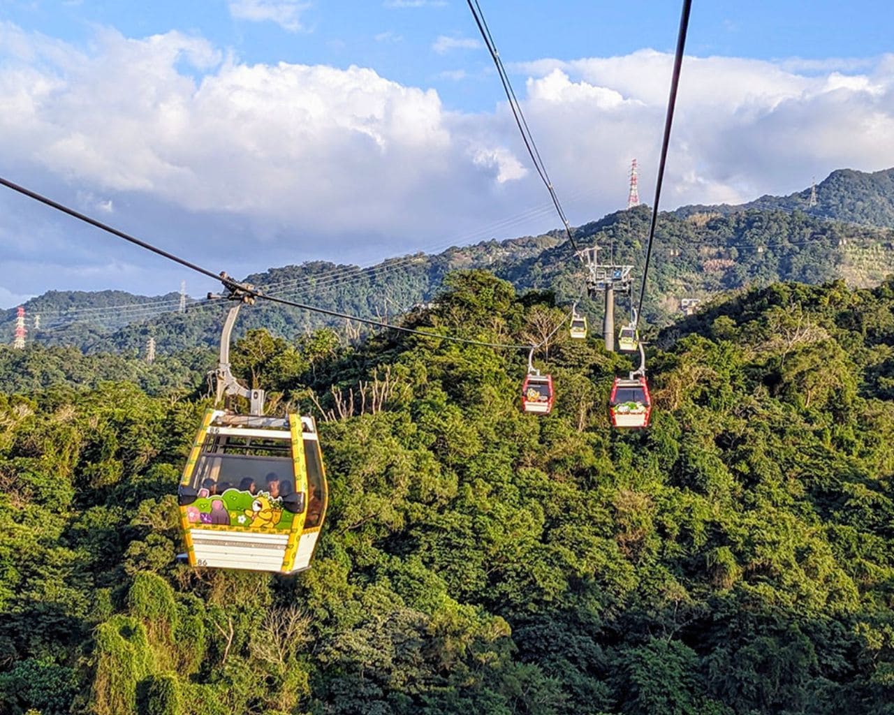 乘坐「貓空缆车」,从台北动物园出发,途经指南宫,最终抵达山上茶乡猫空。全程约 4 公里,车程约 20–30 分钟,沿途可欣赏树林、茶园与台北景观,是“台北轻旅行”与“茶园纜車体验”游客的最爱。如选择搭乘透明水晶车厢,更能全景观赏山城和盆地美景。到站后建议品尝茶叶冰淇淋或茶餐料理,体验当地茶文化与观景茶馆氛围。