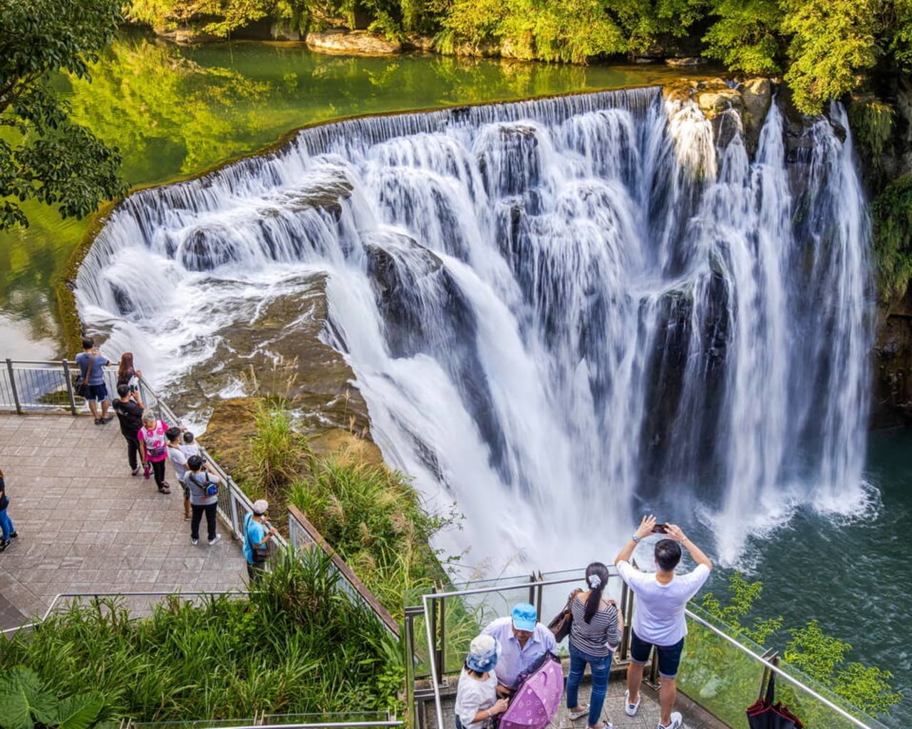 Shifen Waterfall is often called the “Niagara of Taiwan” for its wide curtain-like cascade. Located near Shifen Old Street, it’s easily accessible via scenic walking trails, making it a favorite stop for families and nature lovers.