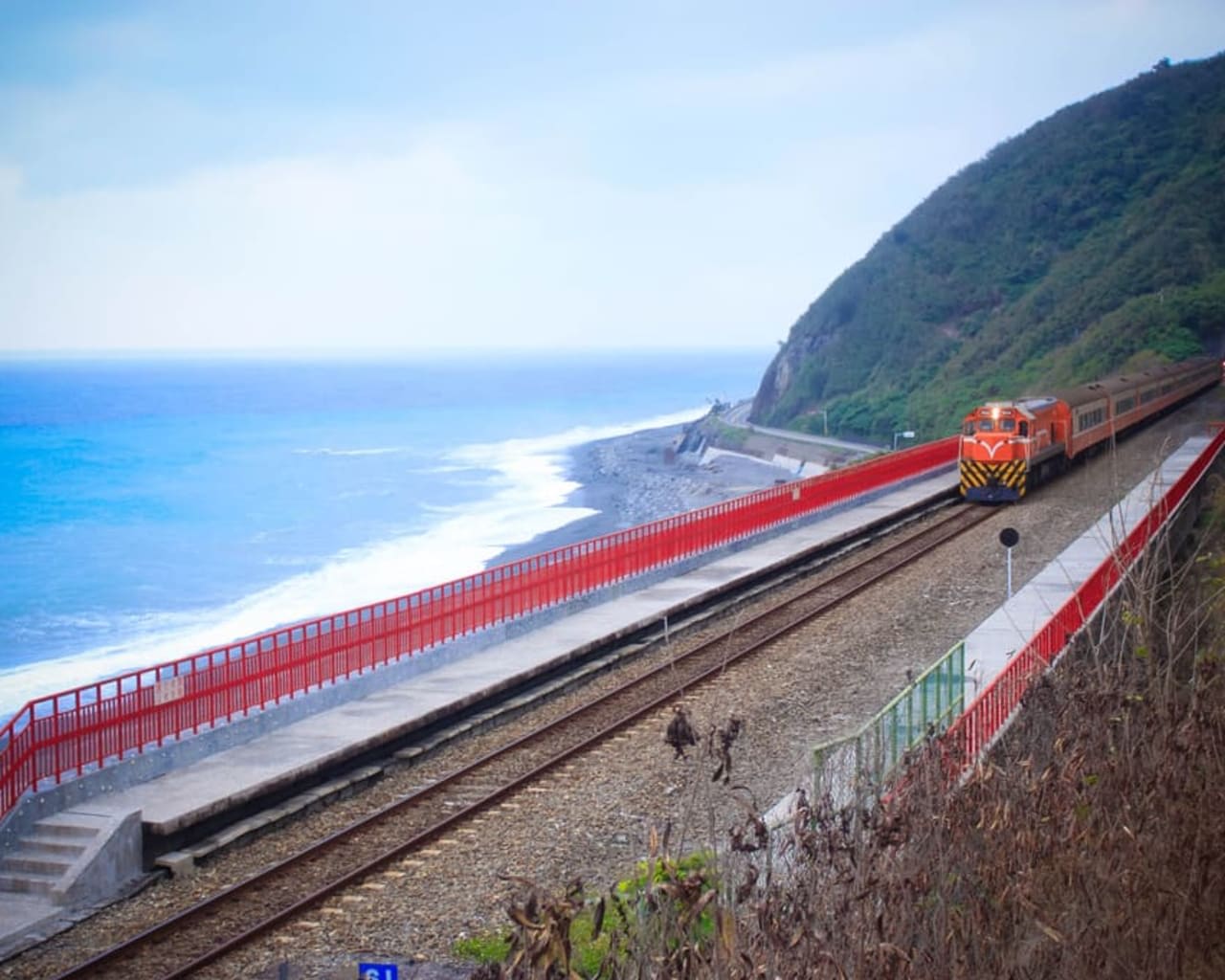 Standing on the cliffside, Duoliang Station offers a breathtaking view of the boundless azure Pacific Ocean and the coastal railway. Known as "Taiwan's most beautiful station," it's a popular photo spot. The train's gentle passage between the sea and sky creates a classic scene, a romantic destination for photographers and couples.