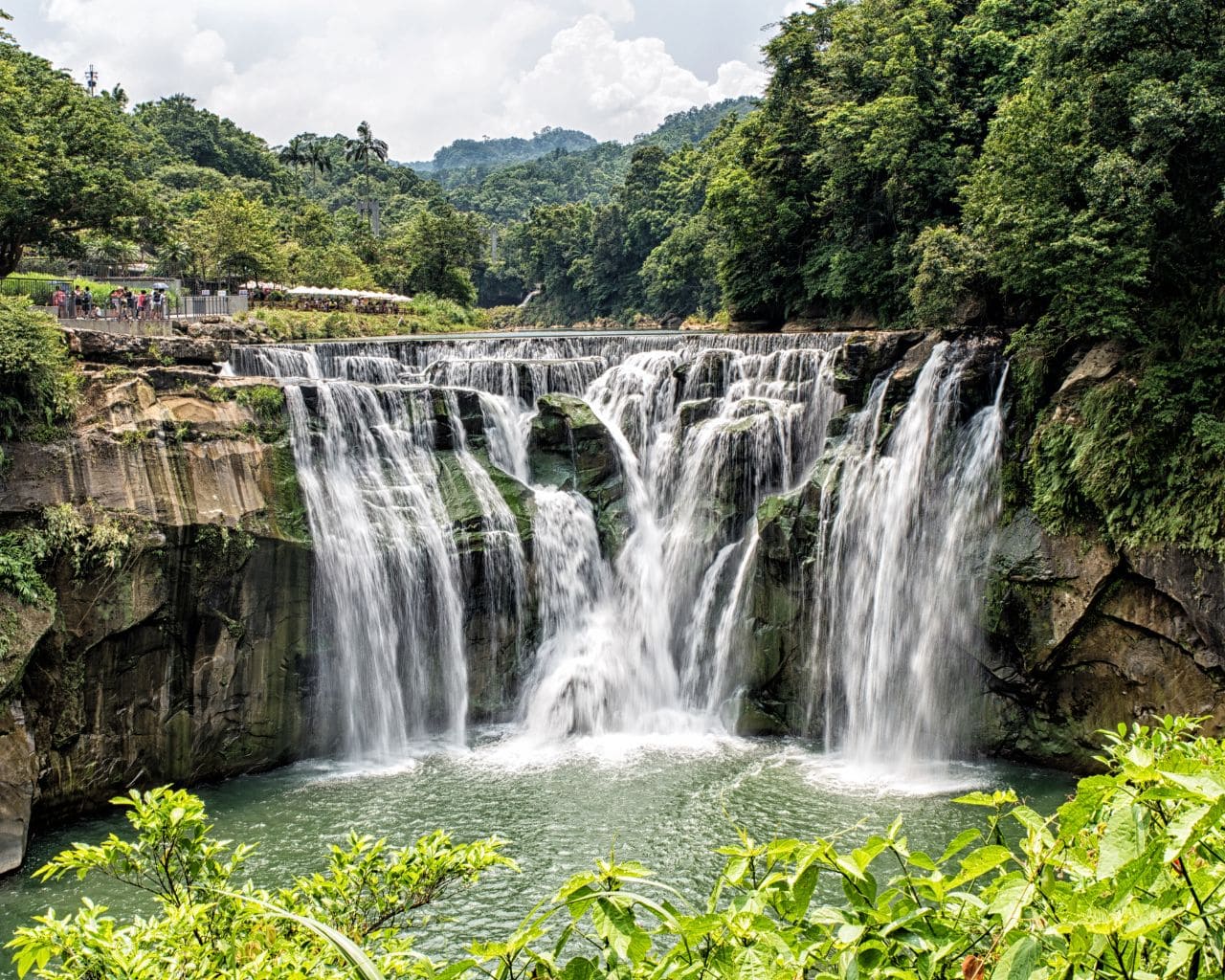 Shifen Waterfall, located in Pingxi District, New Taipei, is Taiwan’s largest curtain-type waterfall — spanning roughly 40 meters in width and 20 meters in height — earning it the nickname “Taiwan’s Niagara Falls.” A scenic 15–20 minute walk from Shifen Station takes visitors through old streets, suspension bridges, and forested trails to viewing platforms. Surrounded by lush greenery, the waterfall often produces misty rainbows when hit by sunlight. Easily accessible and highly photogenic, it’s one of the most popular “waterfall attractions in northern Taiwan.”