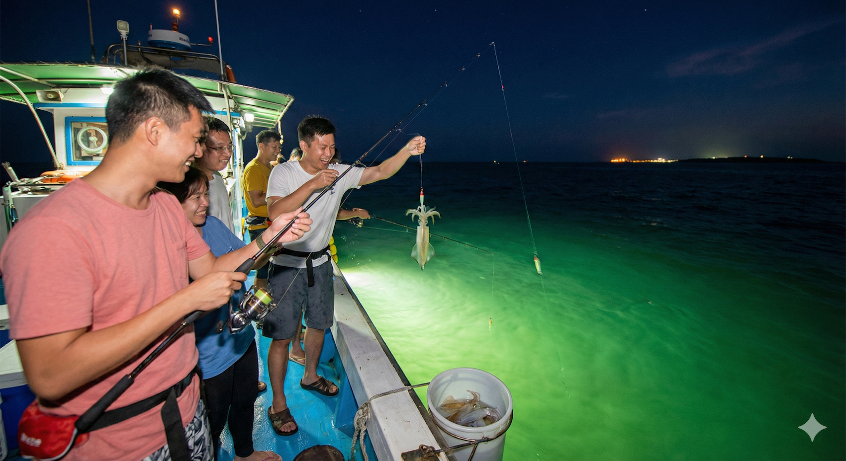 夜釣小管是澎湖非常有代表性的「夜間行程」。