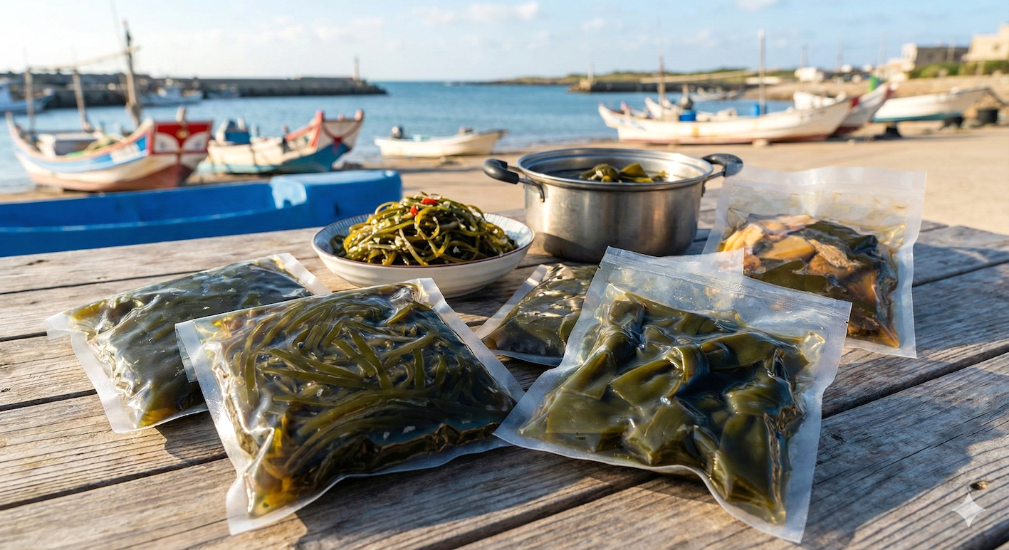 澎湖的海帶肉厚、香味更明顯。真空包海帶絲、海帶結非常適合作為伴手禮與家常料理。