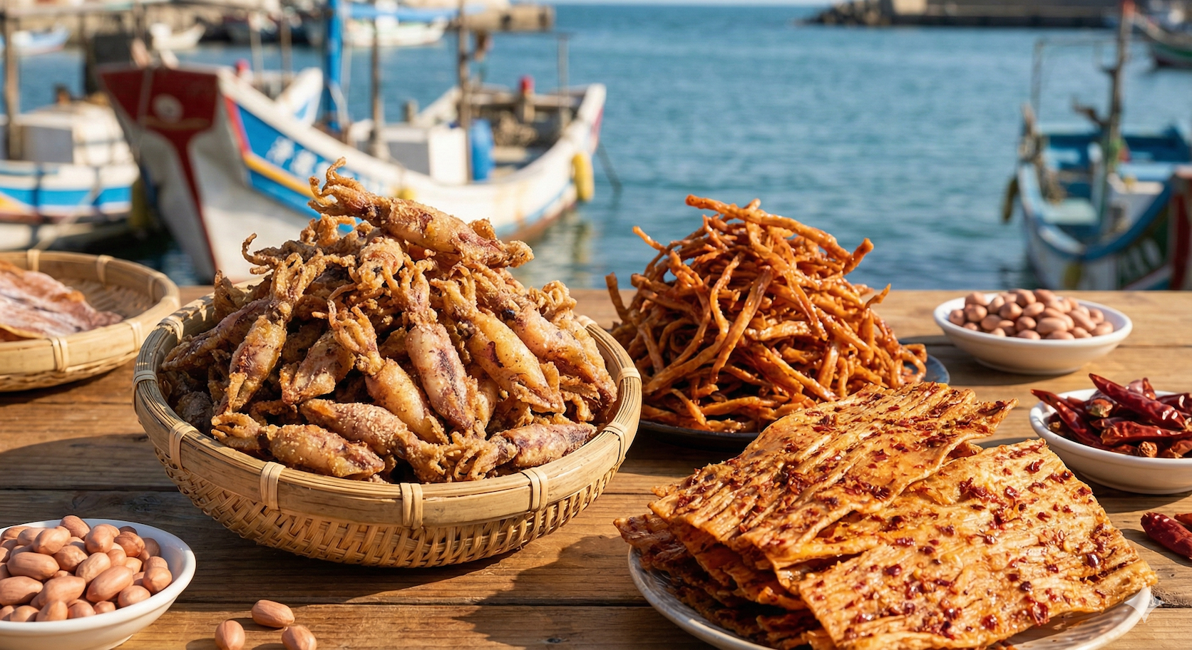 一盒黑糖糕、一瓶干貝醬、幾包麻花捲,或是一口就能喚起海風的花枝丸——