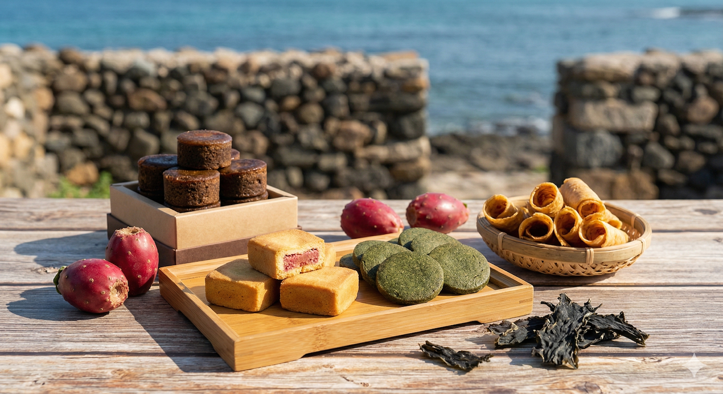 甜點控不能錯過的澎湖糕點,包括仙人掌酥、海藻餅乾、花生糖等,適合長輩或公司同事。