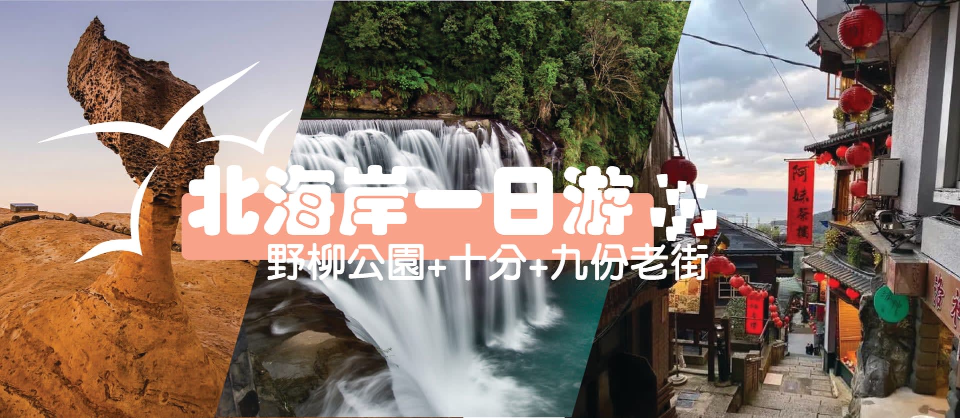 九份經典拼車一日遊-野柳公園,十分瀑布,十分老街放天燈,九份老街(兩人成團)