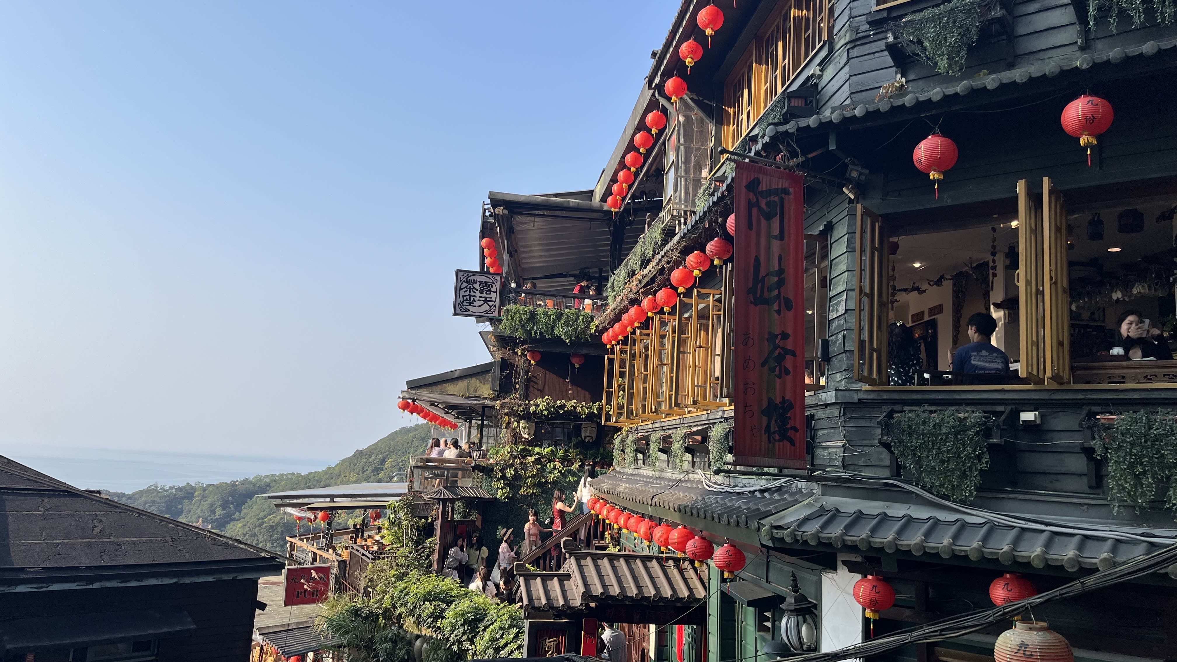 九份老街:沿山坡緩緩向上的九份老街,狹小街道匯聚各式店家,傳統美食香氣撲鼻,一定要品嘗芋圓、肉圓、草仔粿等九份經典小食,還有小巧可愛的古董玩物、富台灣特色的紀念好禮,帶給旅客琳瑯滿目的購物選擇。旅客可在蜿蜒的九份巷弄中探險,從不同角度欣賞九份之美。