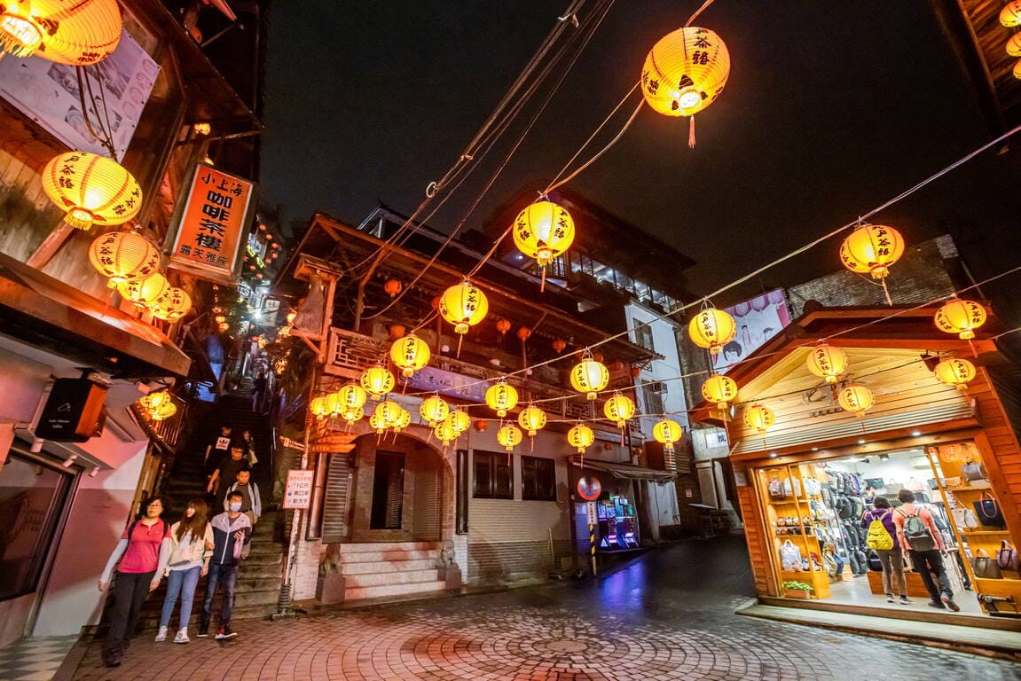九份老街擁有日治時期金礦山城風貌,石板街道與紅燈籠懸掛的茶樓相互輝映,呈現濃厚的懷舊氛圍。沿街販售芋圓、草仔粿與茶藝點心,是深受國內外遊客喜愛的「台灣山城文化代表」。黃昏時分燈火亮起,宛如動畫場景,是攝影與文青旅人不容錯過的一站。